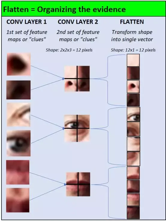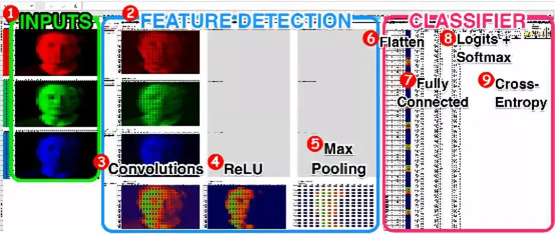每个卷积层都会包含一堆特征图或相互构建的“线索”。在所有卷积完成过后,他将所有这些线索放在一起,就破解了案件并正确识别出目标。