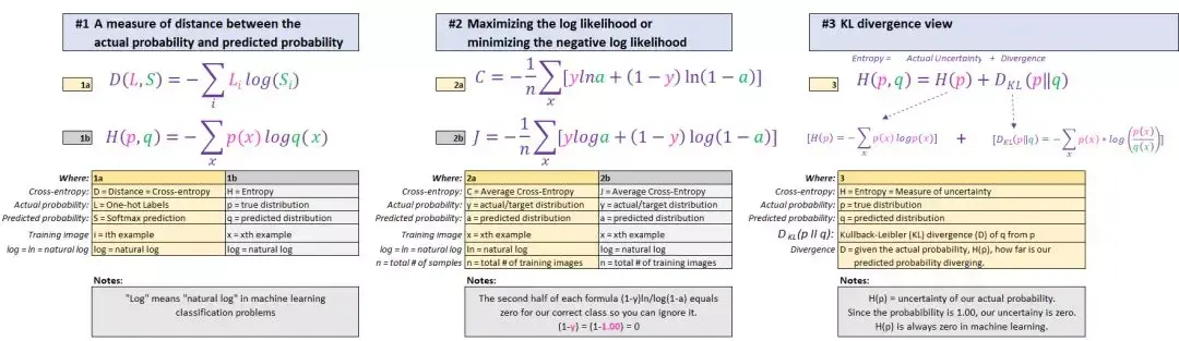 CNN 最常用的损失函数是交叉熵损失函数。在 Google 上搜索交叉熵会出现很多希腊字母的解释,很容易混淆。尽管描述各不相同,但它们在机器学习的背景下都是相同的,我们将覆盖下面最常见的3个。