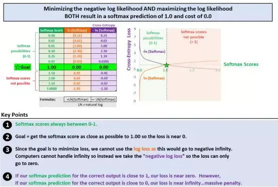 在 CNN 中,“log” 实际上意味着“自然对数(ln)”,它是在 softmax 的步骤1中完成的“指数/置信度”的倒数。