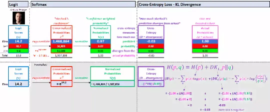 这个 softmax 分类器非常直观。Sherlock 认为,终结者看到的照片是 Elon Musk 的机率是97%(置信度加权)。我们模型的最后一步是计算损失。损失值告诉我们侦探 Sherlock 的辨识能力究竟有多好(或者多差)。