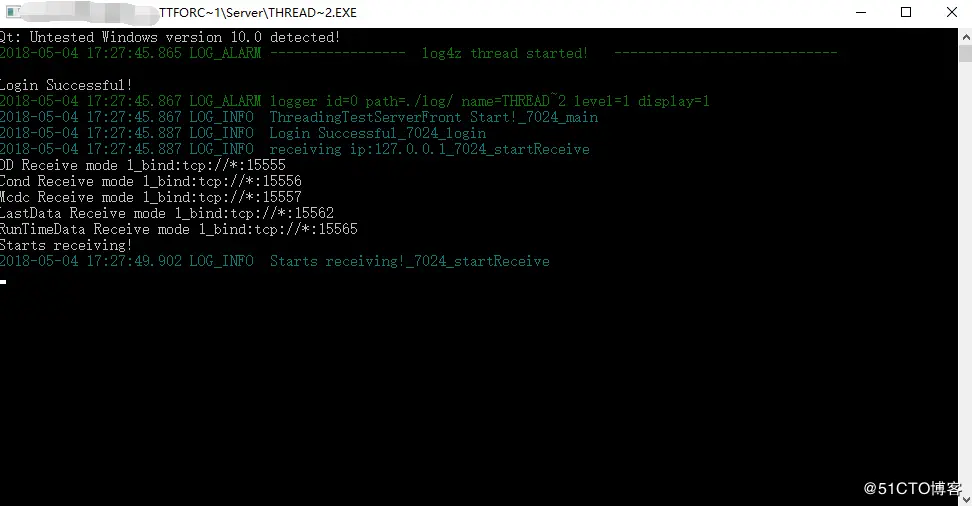 3、启动server目录下的ThreadingTestServer.exe后会自动打开同级目录下的ThreadingTestServerFront.exe,看到自动弹出下面窗口后,表示连接正常。