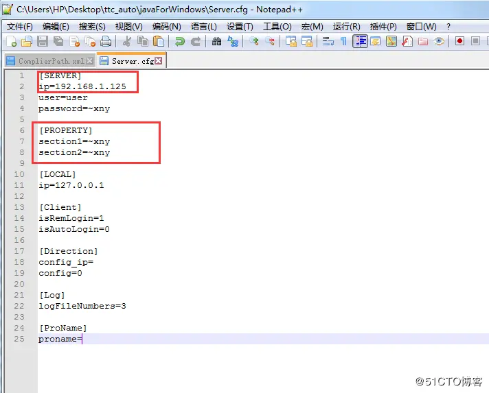 3, javaForWindows目录下的Server.cfg配置文件,[SERVER] ip填写实际ip地址,修改[PROPERTY]字段,与客户端目录下的Server.cfg同步