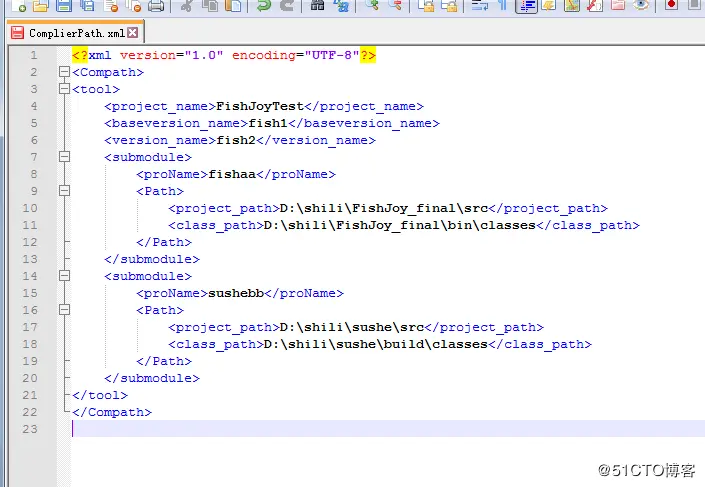 4、修改javaForWindows目录下的ComplierPath.xml配置文件