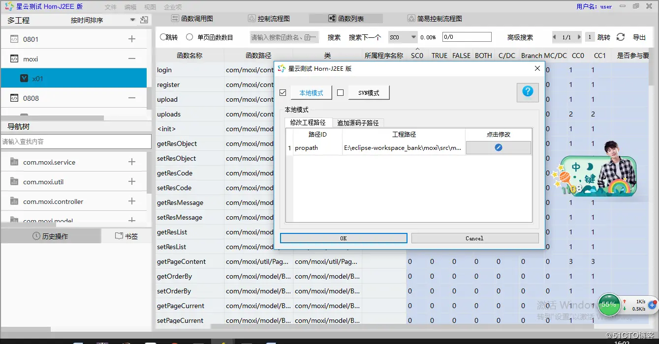 打包完成,为使函数覆盖率可视视图代码部分显示正常,需要手动修改源码路径:右键版本,点击修改源码路径,选择到pre_java目录即可。