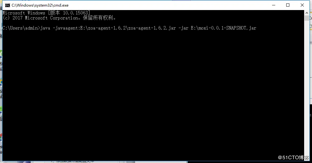 java -javaagent:E:zoa-agent-1.6.2zoa-agent-1.6.2.jar -jar E:moxi-0.0.1-SNAPSHOT.jar