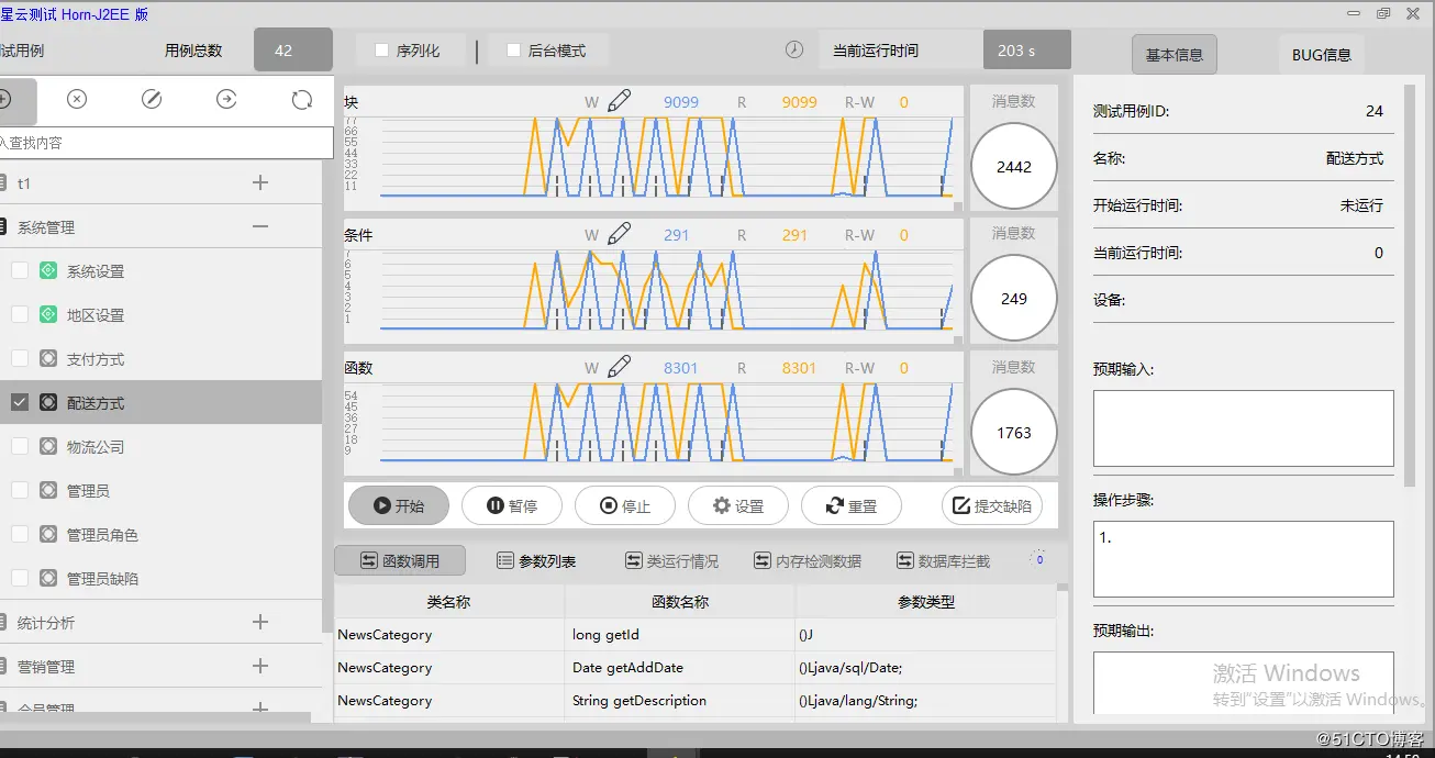 页面登陆进去以后,假如测试内容管理的文章管理的测试用例,则选择内容管理的文章管理的用例,点击开始,在页面上点击内容管理的文章管理,就会有相应的测试数据传输过来(具体的展示见后面测试结果的第一个标题:示波器的展示),数据接收完以后点击停止,本条用力测试完毕