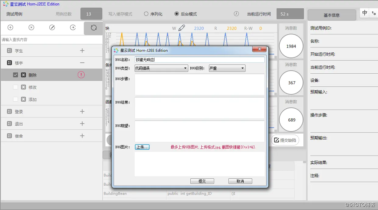 1、 运行下的星云测试server目录中ThreadingTestServer.exe,在右下的图表中点注册信息,查看其时间,星云测试有两个月的体验,若是超过两个月,发生KEY过期,请联系星云测试的工作人员,并提交服务端中的序列码