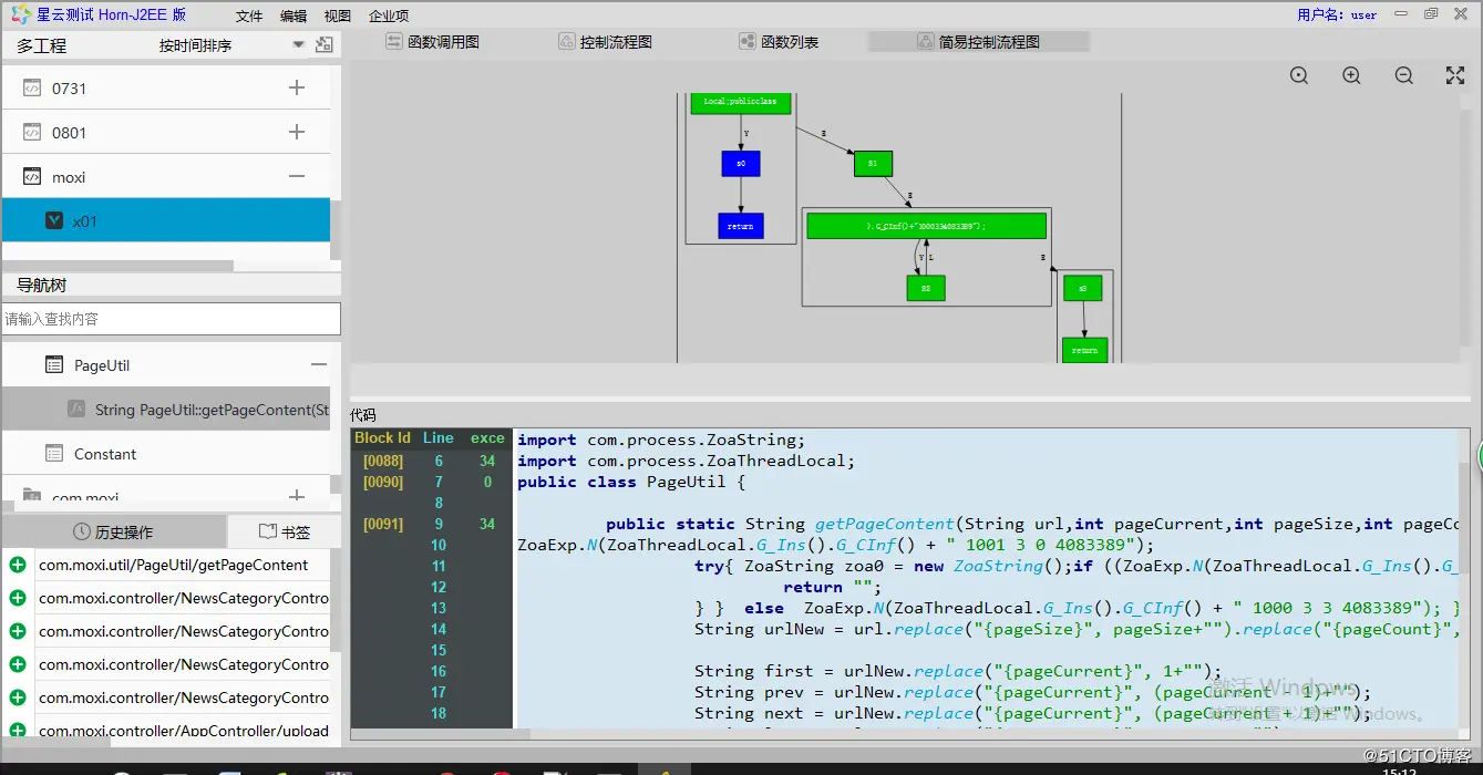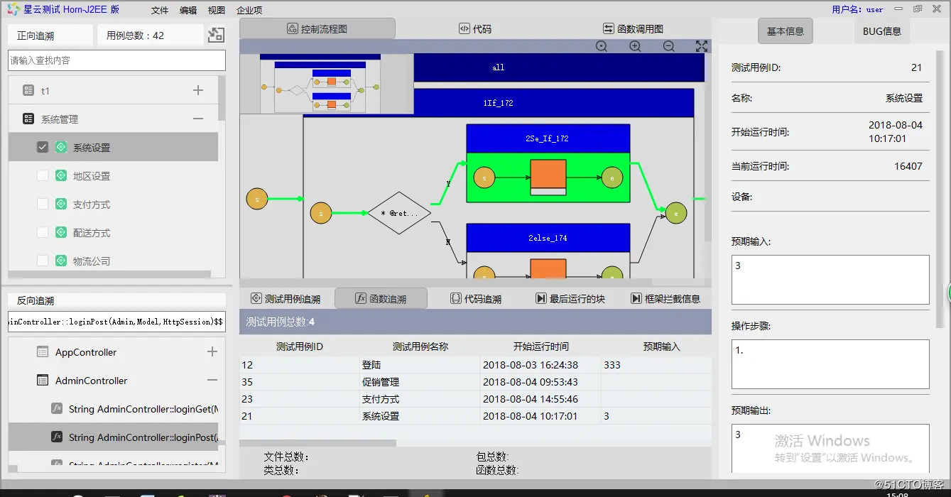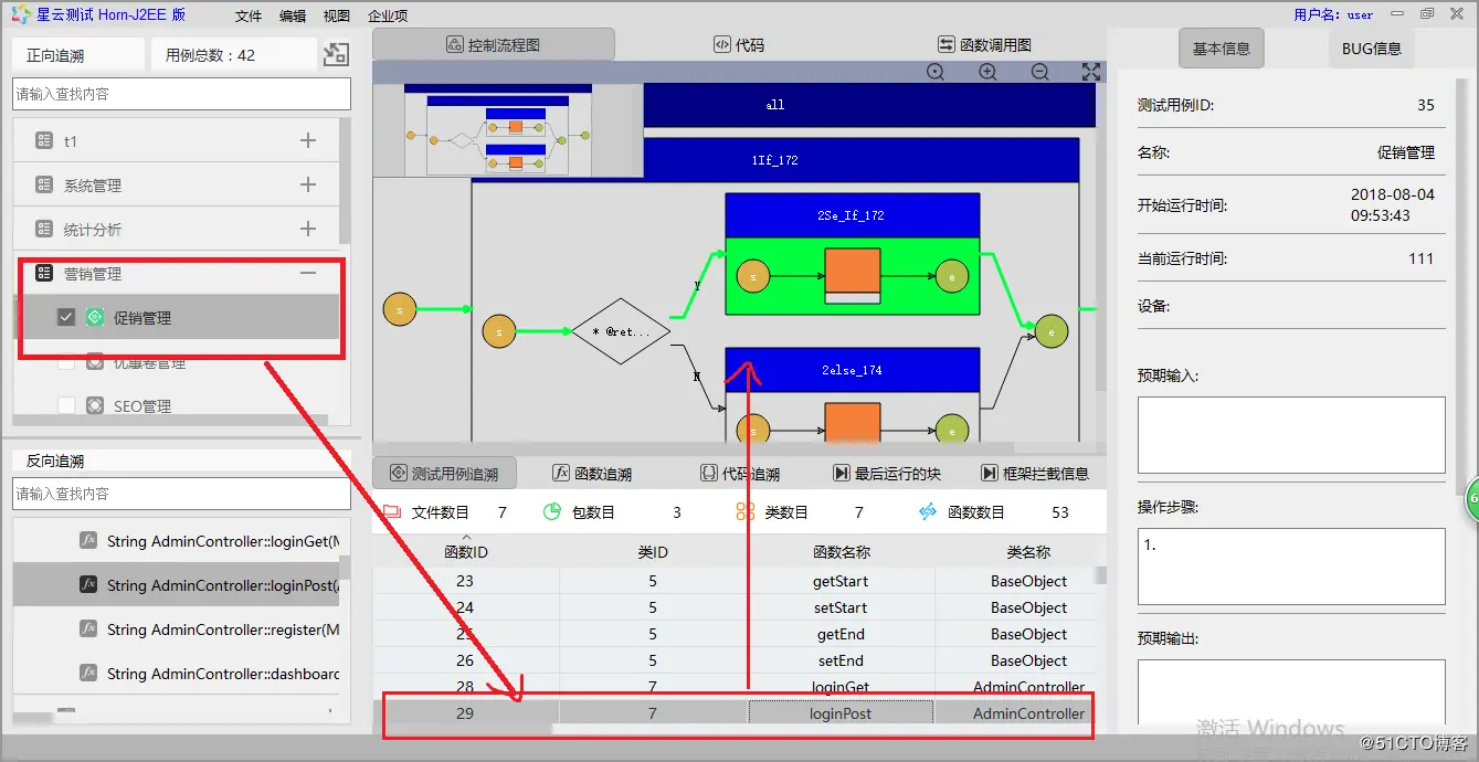 如图:点击测试用例追溯到这个成而是用例运行过得函数,选中一个函数,追溯到这个函数运行过得控制流程图的逻辑分支