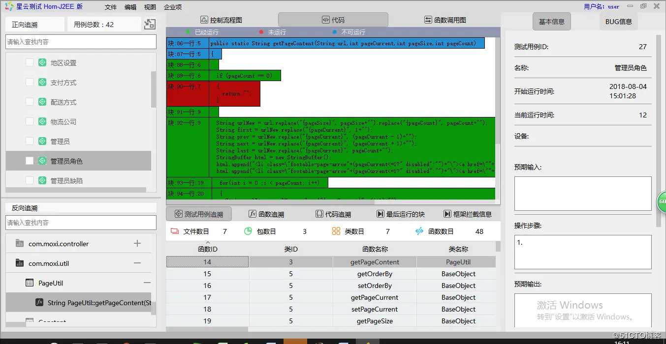 选择函数追溯到运行过该函数的测试用例,查看该函数的控制流程图和代码