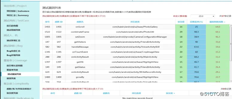 在一个程序中,往往有成百上千的函数,这些函数有的是关联整个程序核心、有的则是开发人员弃而不用,但一直保留迟迟不肯删除的,针对这些大量的函数,“精准测试”采用通过静态、动态指标的综合分析,在大量的程序函数中,通过计算直接筛选潜在的高危的测试漏洞,通过报表给予展示。