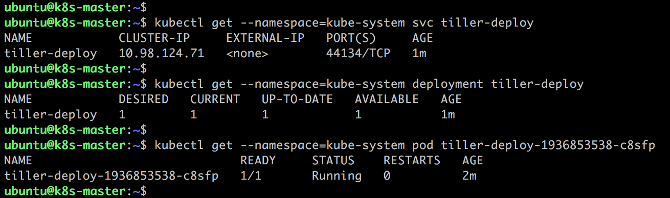 Tiller 本身也是作为容器化应用运行在 Kubernetes Cluster 中的: