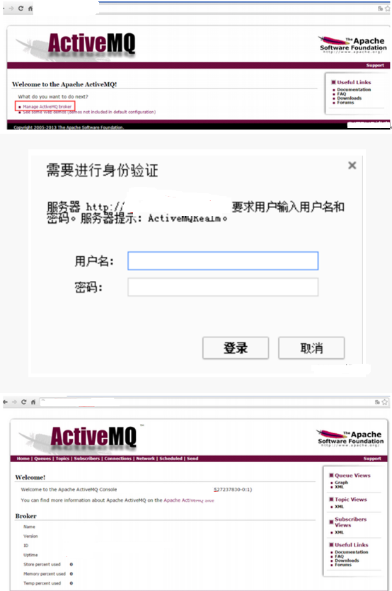 6、 打开管理界面:xx.xx.xx.xx:8161
