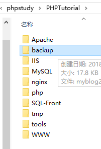 第三步:进入你安装phpstudy目录下的 backup目录,里面专门存放备份生成的.sql文件。