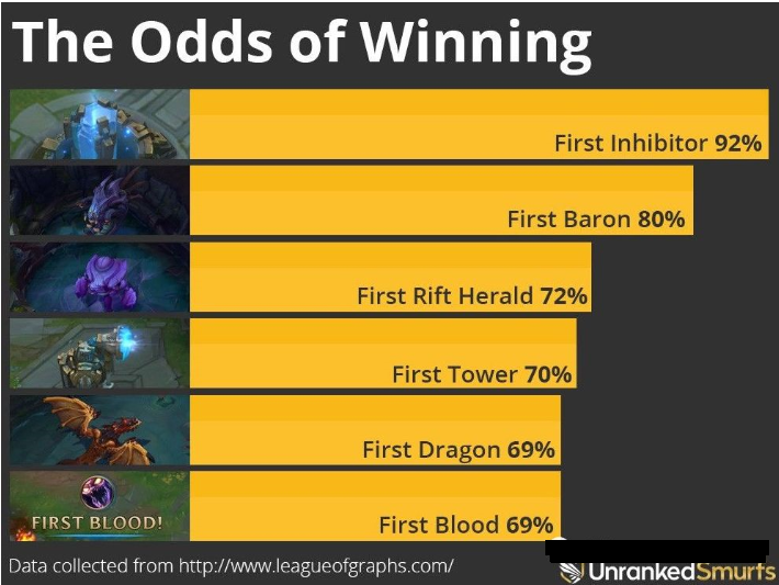 以这种方式建模对英雄联盟这类游戏来说更为重要,因为在该类游戏中,家补兵和杀人后可以获得装备并升级。例如,一个玩家拿到首杀就可以获取额外金币购买更强的装备。而有了这些装备之后,该玩家变得更加强大进而获取更多人头,如此循环,直到带领其队伍获取最后的胜利。这种领先优势被称为“滚雪球”,因为该玩家会不断积累优势,不过很多时候,该玩家在游戏中所在的队伍并不一定是优势方,野怪和团队合作更为重要。