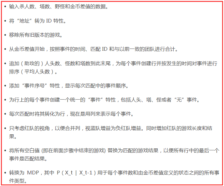 这变得越来越复杂,我不会在此文中展开,但简而言之,我们想为玩家匹配决策,其中下一个最佳决策取决于最新情况。比如,如果一队玩家将对方全部歼灭,他们可能会去拿大龙。我们的模型已经将一个序列中事件发生的概率考虑在内,因此,我们也应该用同样的方式思考玩家的决策。这一想法来自一篇论文《DJ-MC: A Reinforcement-Learning Agent for Music Playlist Recommendation》,该论文阐释了如何更加详细地将反馈映射出来。