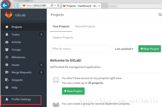点击GitLab的logo,可以从任何界面回到本页
