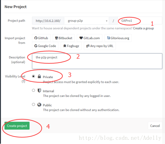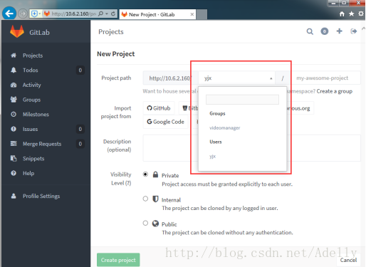 从组里添加项目可免去再添加项目用户的步骤,因此我们选择从组内添加工程。