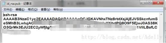 2.发布公钥到服务器 用记事本打开刚刚保存的id_rsa.pub文件,能看到如图所示的类似内容,将他们复制下来。