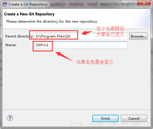 Create->自定义仓库名称->Finish