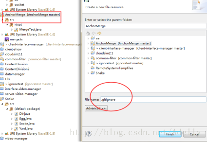 右键工程->new file->输入.gitignore 生成.gitignore文件