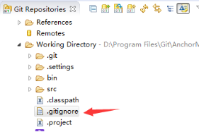 在界面上输入.classpath .settings .project 保存。可以在仓库视图的Working Directory中看到这个文件。此时你commit时会自动过滤掉这三类文件。若本来工程下面就有这个文件里面如果有/bin/类似的文字不要删除,直接换行添加你需要过滤的文件。