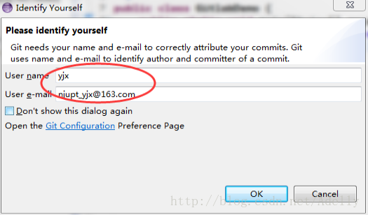 提示验证信息,将自己用户名和邮箱填写进去,点OK. 下次就不需要填写了。