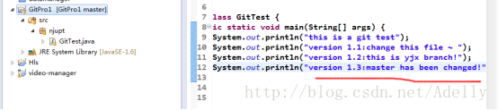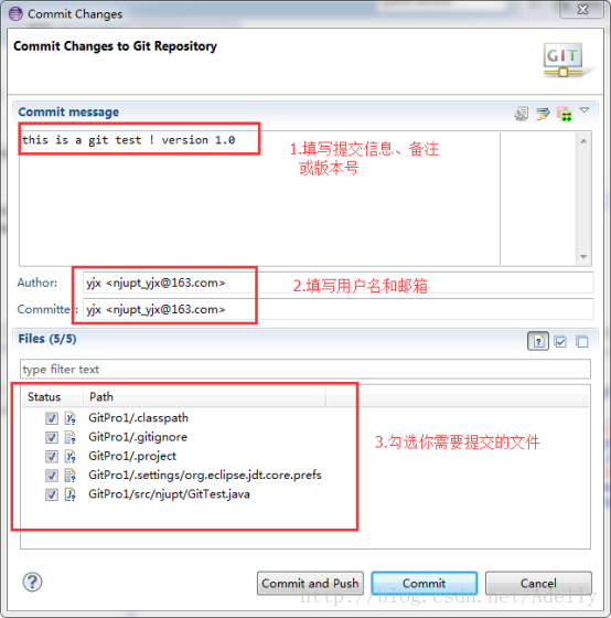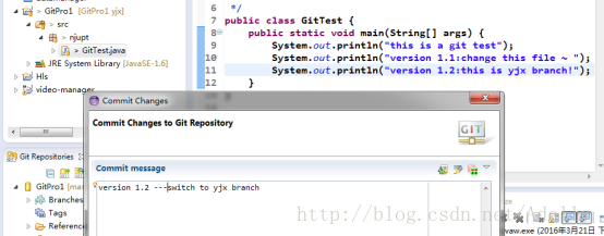 选中修改过的文件。右击Team->commit. 提交时注释信息为”version 1.1”。