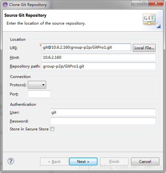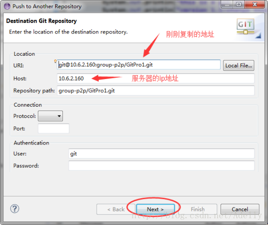 输入信息后点击next,我们会看到服务端git库的分支master出现了