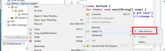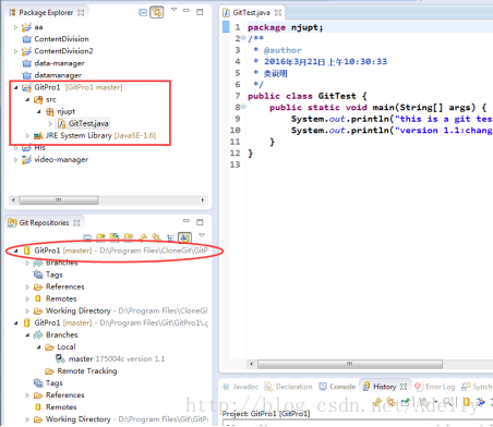 3.相关的具体操作 1)在Eclipse中新建一个项目,此处新建测试用的项目是GitPro1