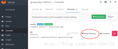 登陆自己的Gitlab账户。点击Project或进入工程点击Branch会看到创建合并请求的标签: