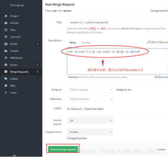 12)新建分支与master分支进行合并请求(Merge Request)