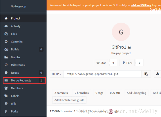 此时,管理员登陆Gitlab后点左侧Projects->GitPro1->Merge Requests