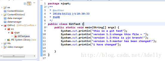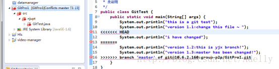 此时,选择冲突的文件GitTest.java右击,Team > merge tool .