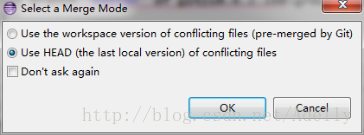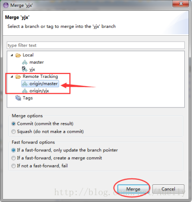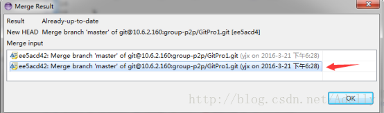 作为developer用户在自己的分支上先右键->fetch from upstream将远程master分支的最新版本更新到本地,ok。 接着右键->team->merge ,如图选择下面远程仓库的master分支,Merge,选择最新的版本,点ok,则当前自己的分支已更新到远程master分支同步。