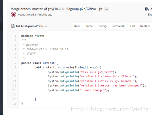 现在在Gitlab上就能看到两个分支,一个master主分支(保护状态,developer无法push)和yjx新建分支
