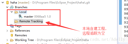 同时,eclipse中的project也建立git版本控制,此时未创建分支,处于NO-HEAD状态