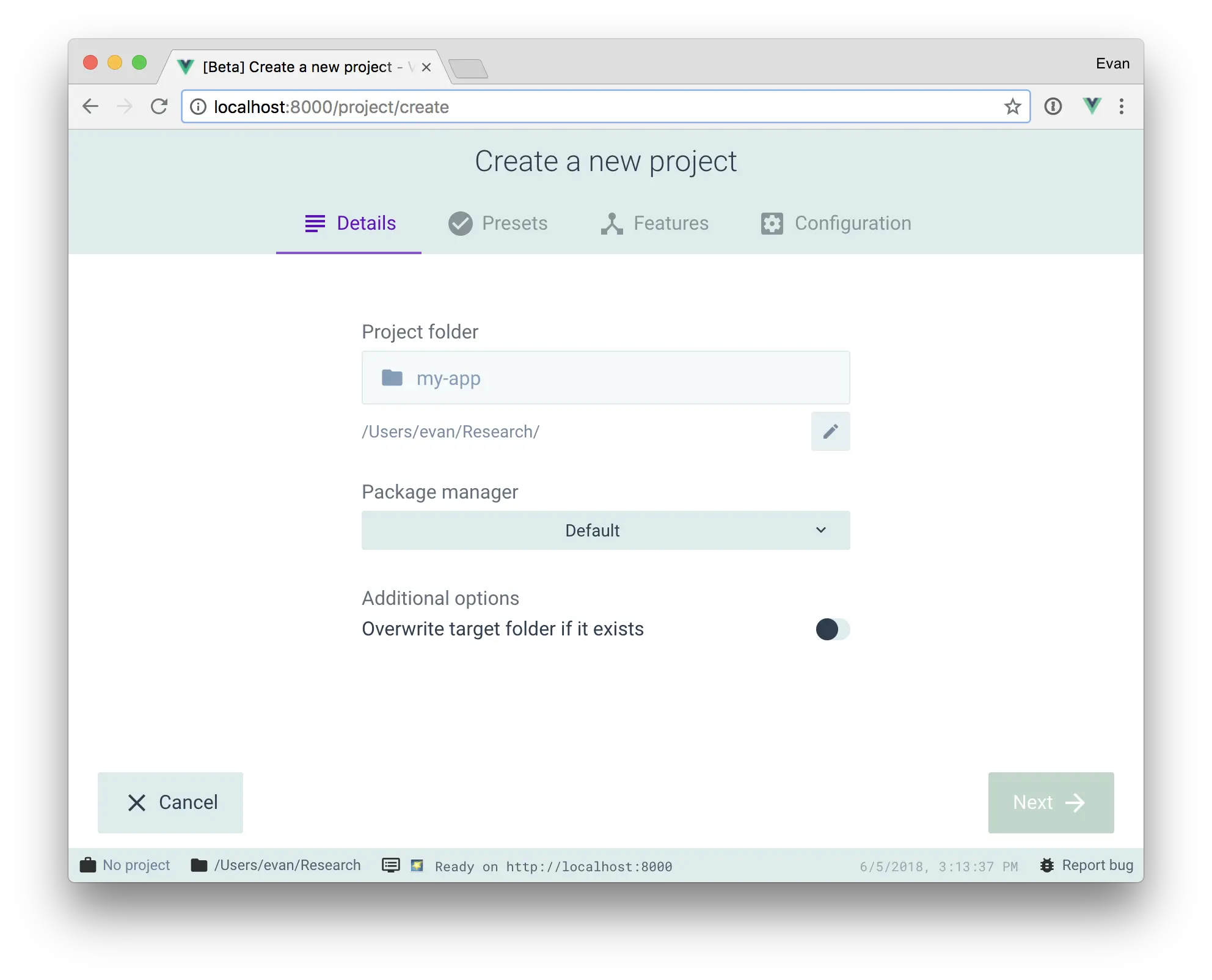 打开一个浏览器窗口,并以图形化界面将你引导至项目创建的流程。