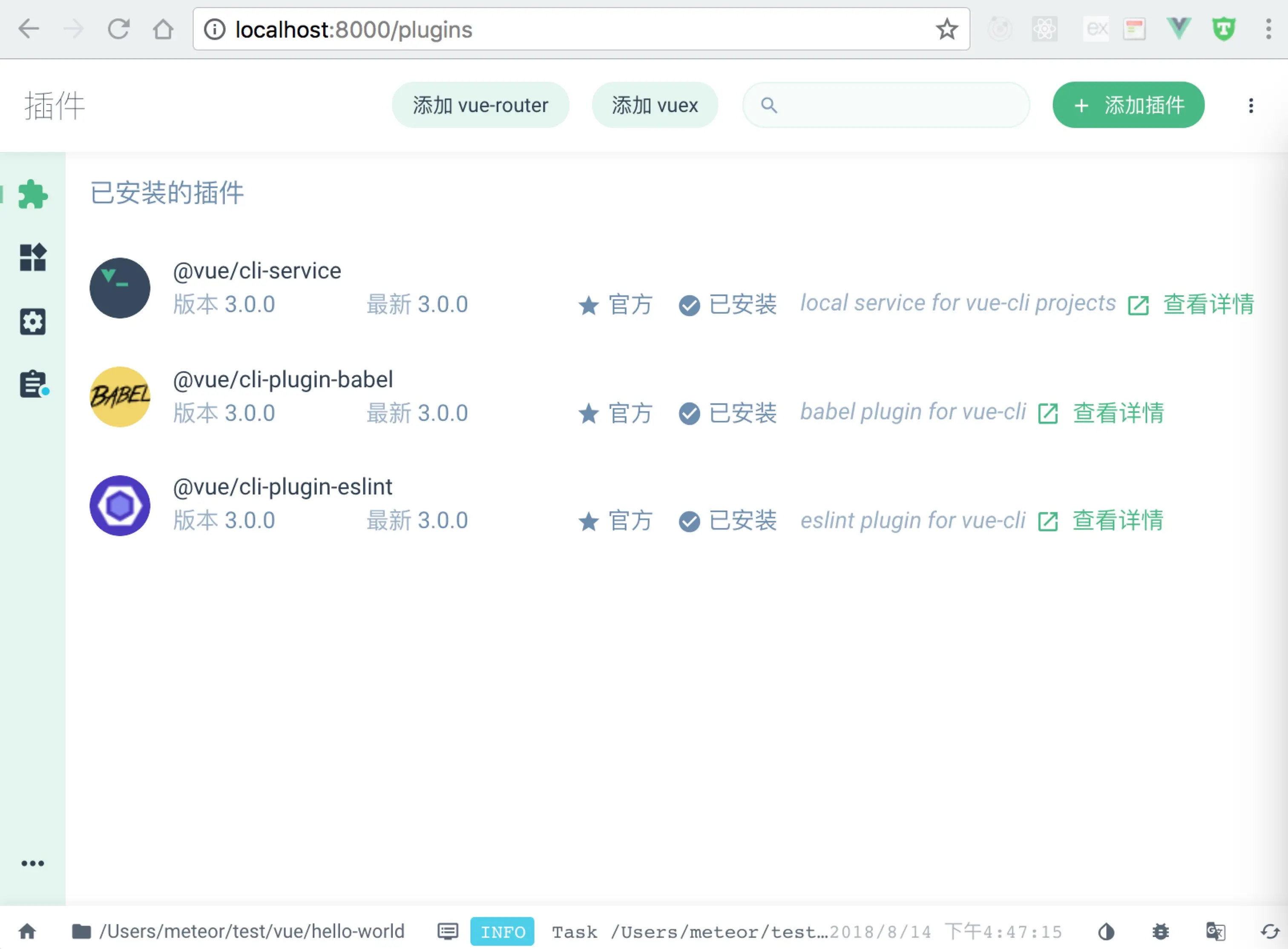 你也可以通过 vue ui 命令以图形化界面创建和管理项目: