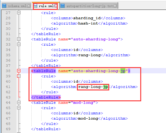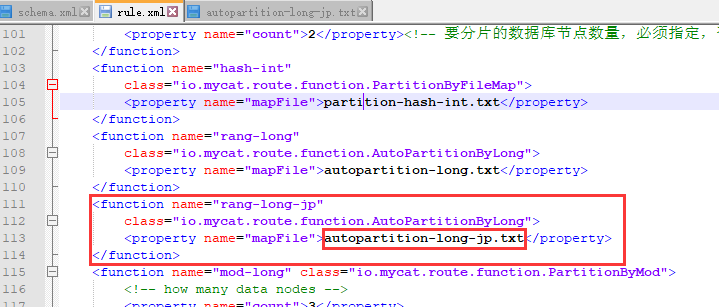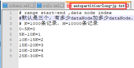 <table name="company" primaryKey="ID" type="global" dataNode="dn1,dn2,dn3,dn4,dn5,dn6" rule="auto-sharding-long"/>设置了type="global",所以刚刚每个库表都有内容。取消global全局设置就可以了。下面再来一个演示示例。 - 自定义分片规则