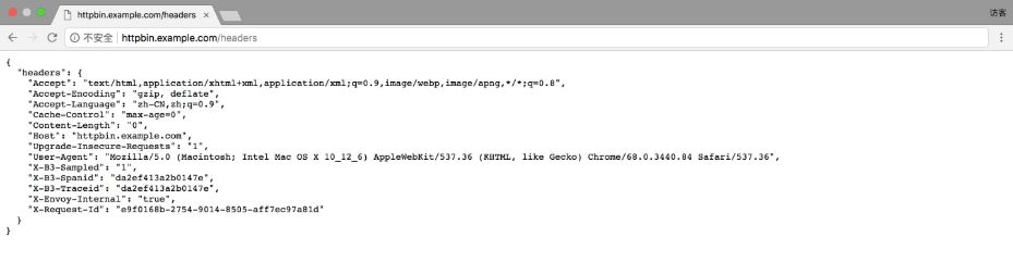 接下来就可以在浏览器中输入 URL:http://httpbin.example.com/headers 来访问服务啦!