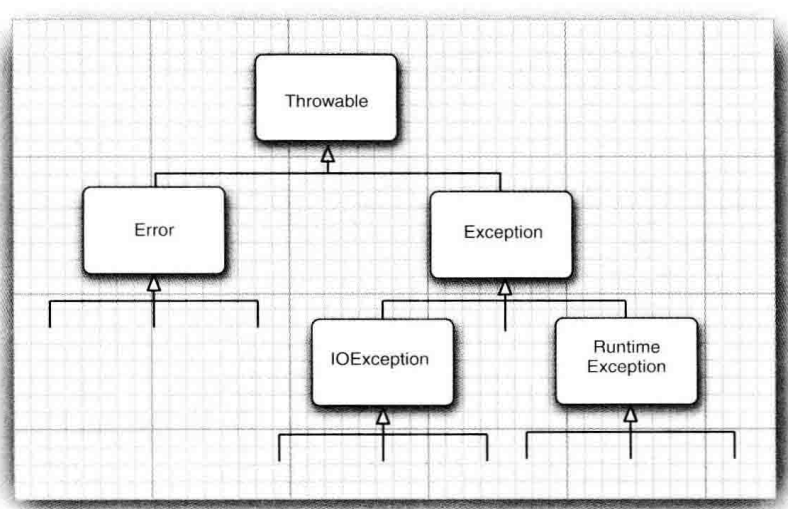 Java语言规范将派生于Error类或RuntimeException类的所有异常称为非受查(unchecked)异常,所有其他的异常称为受查(checked)异常。编译器将核查是否为所有的受查异常提供了异常处理器。