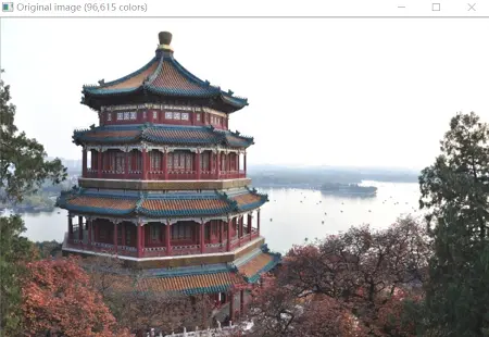 cv2.imshow('Original image (96,615 colors)',china)