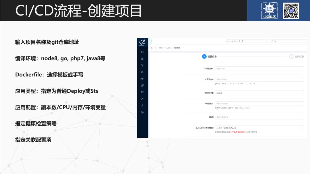 线上应用可以配置指定容器副本数,CPU 及内存资源限制,环境变量等。对于 Node 8 或者 Go 业务,环境变量能为测试或生产集群指定相应的环境变量。业务根据其寻找相应的配置。健康检查策略主要是利用 Kubernetes 标准 HTTP GET、TCP 端口探活,自定义 SHELL 命令行作容器的健康检查。应用业务上线有一些配置文件。Ruly PaaS 将配置文件导入 PaaS 的配置中心。在 CI/CD 时将该应用与配置项做关联。
