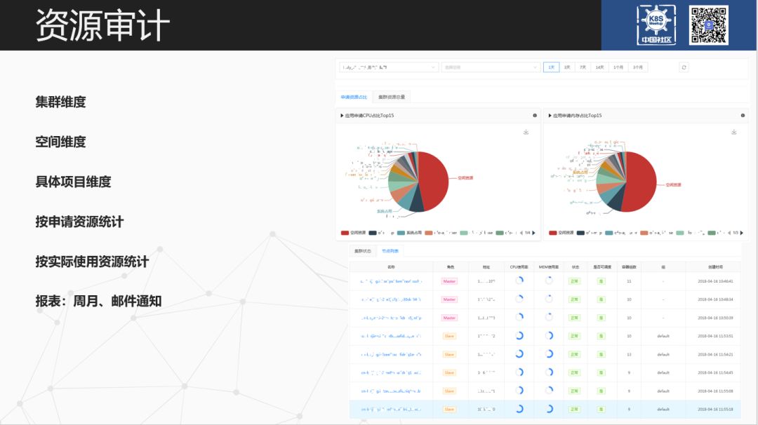 提供集群,Namespace 以及项目等维度资源的使用情况,主要是为容器或宿主机的升降配,扩缩等提供参考。