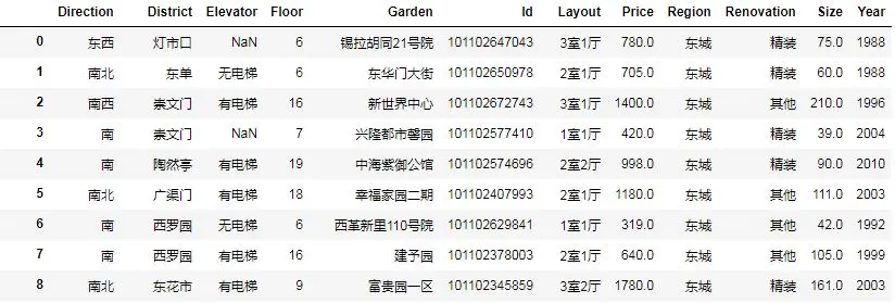 one-hot encoding也就是我们常常听到的独热编码(哑变量)。那么到底什么是独热编码呢?我们来看一个例子,是二手房房价分析中所使用的数据: