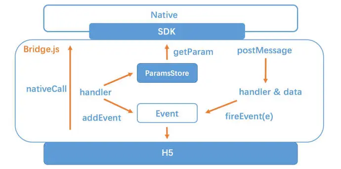 nativeCall 与 postMessage 这两个主体 API 桥接了 Native端 和 H5端