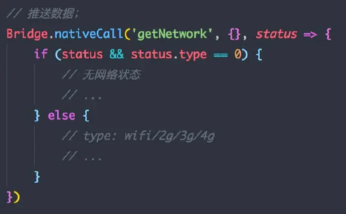 首先,我们先看下在这套方案中,业务方是如何使用的,下面以获取网络状态为例: