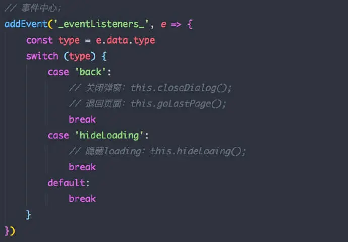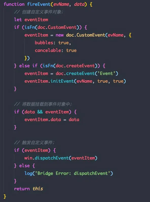 这里就能体现出我们通过事件机制来作为回调系统的优势了,我们可以以最习惯的方式进行事件的监听,而客户端可以直接使用 bridge.fireEvent('_init_', data)触发事件,这样便可以优雅地实现 Native -> H5 的单方向交互。