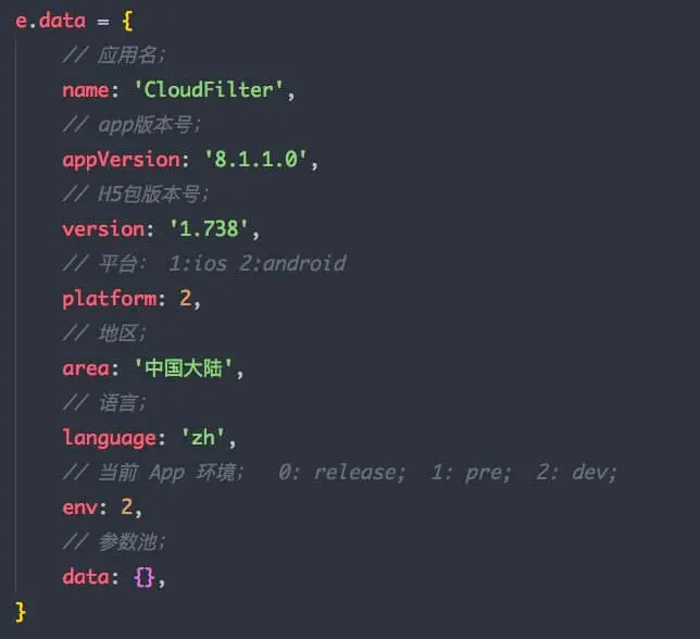 接下来,我们可以通过该事件,直接初始化传给H5一些环境参数和系统信息等,下面是我们使用到的:
