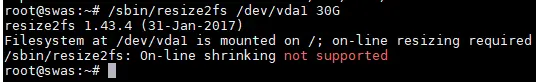 2. on-line shrinking not supported # 尝试直接运行resize2fs来压缩,提示错误,不允许对正在使用的分区进行压缩操作